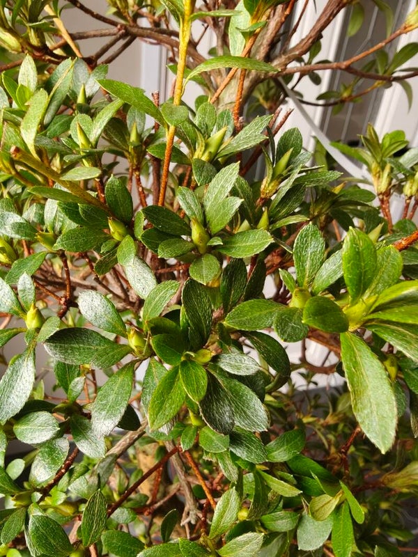 - Buiten houden: Azalea Bonsai’s, zoals Satsuki-variëteiten, gedijen het beste buiten. Ze verdragen zon, maar tijdens hete dagen is halfschaduw aan te raden om verbranding van bladeren en bloemen te voorkomen. Tijdens de bloei is bescherming tegen felle zon en regen belangrijk om de bloemen langer mooi te houden